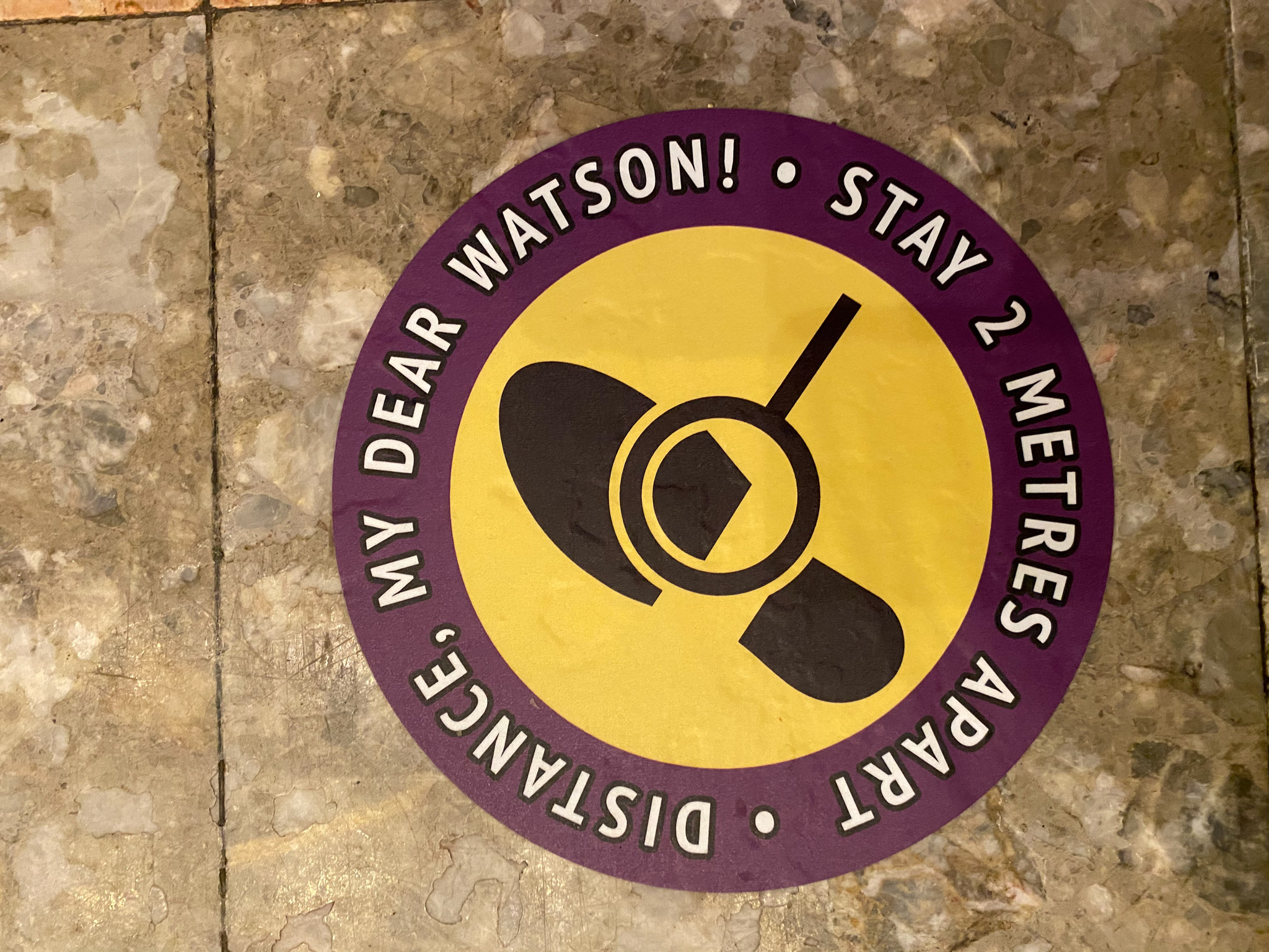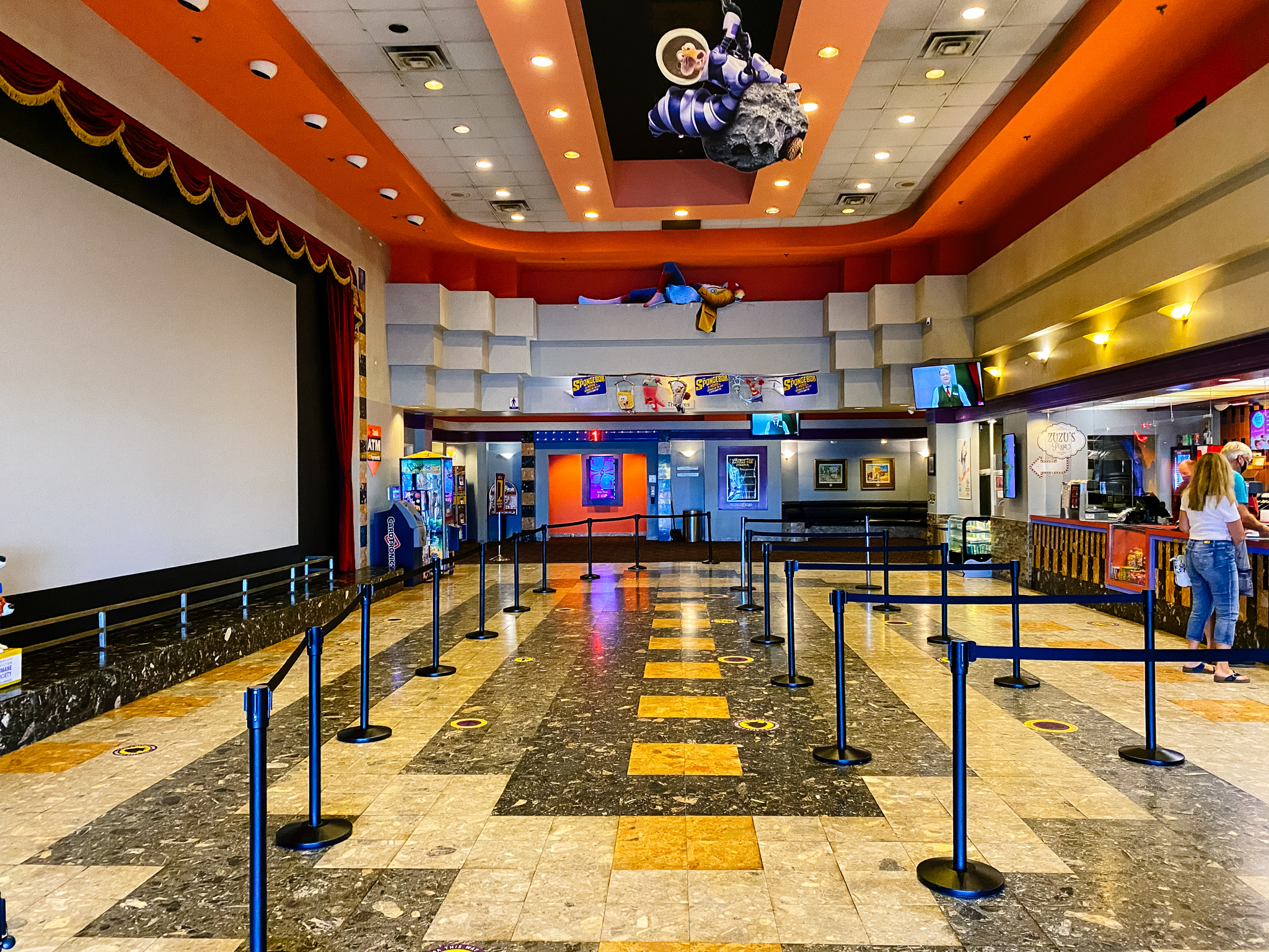 After we went to our seats, which was in an alternate row separated by three seats from the next movie-watcher, I went to the concession stand to explore. The food options were great and there were hilarious floor stickers that mapped out appropriate distancing for customers in line.