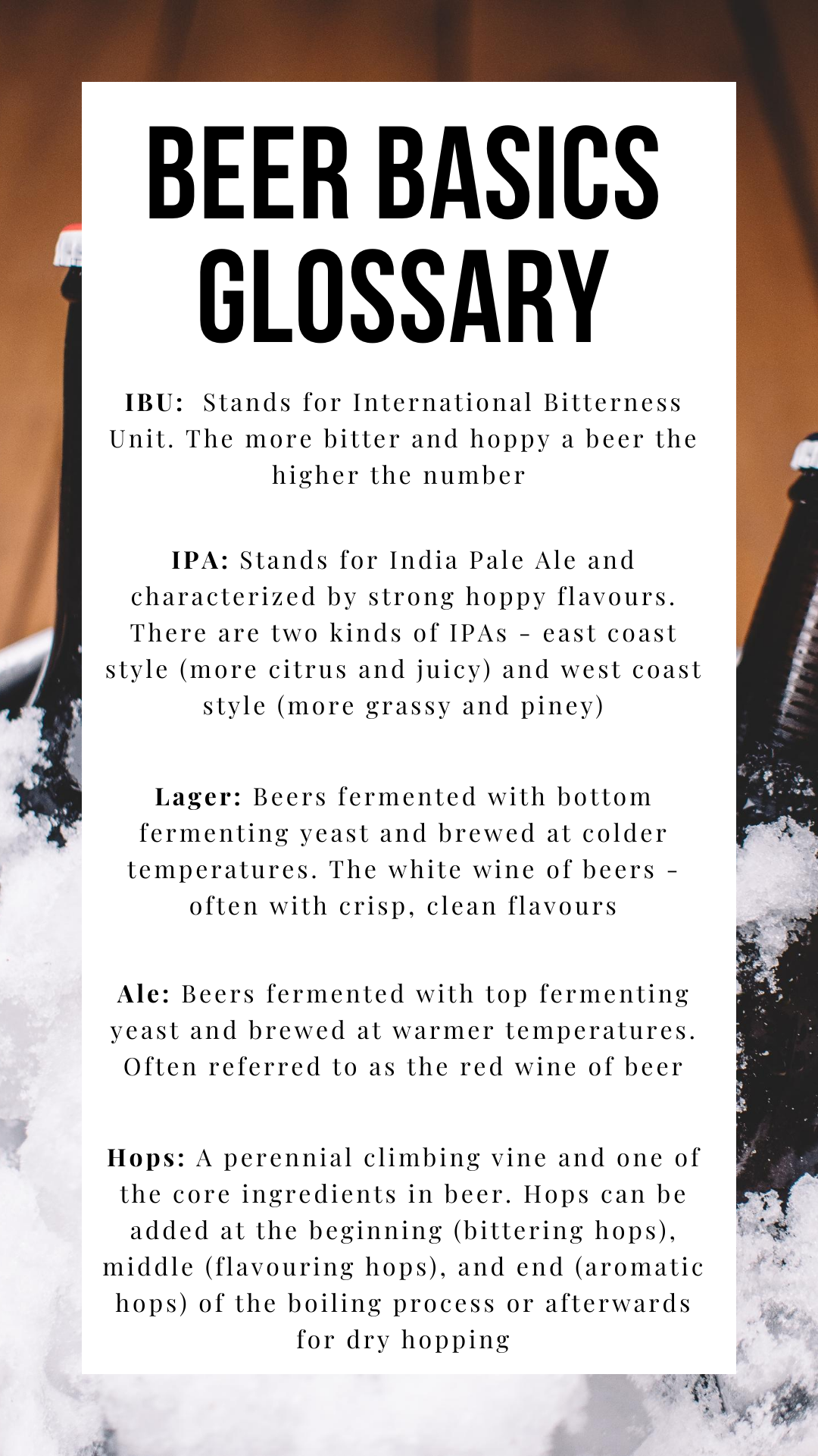 Let’s cover some basics to start. Below is a beer glossary with some of the terms we’ll be using to describe each pour:
