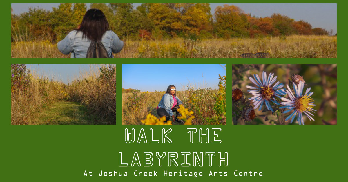 You would think that since summer is over that life would slow down a bit and get back to normal. However, that is not the case for me, as I am still as busy as a bee. Taking a road trip out of town was not feasible for me, so I searched for a fun Oakville attraction for us to visit. I discovered the majestic labyrinth at Joshua Creek Heritage Art Centre. Mowed into the wild grasses of the art centre’s property, the labyrinth is said to be a peaceful and healing green path.